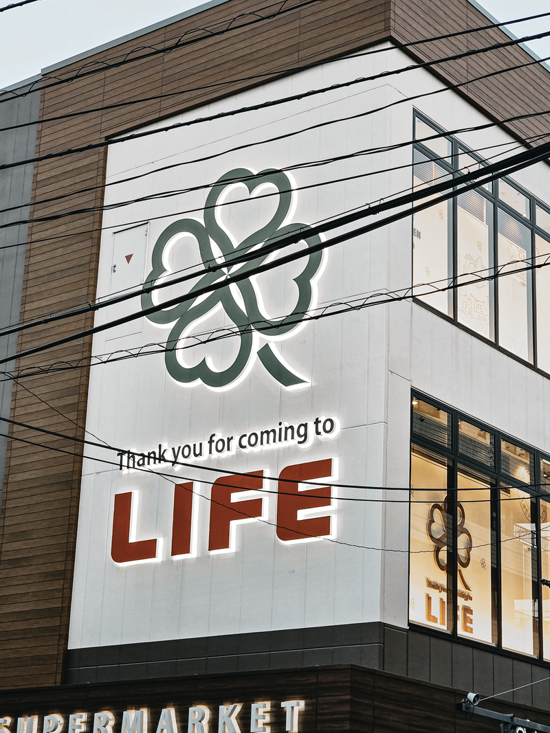 A few months ago I got lost in Adachi City. I looked up and saw this sign: “Thank you for coming to LIFE.”